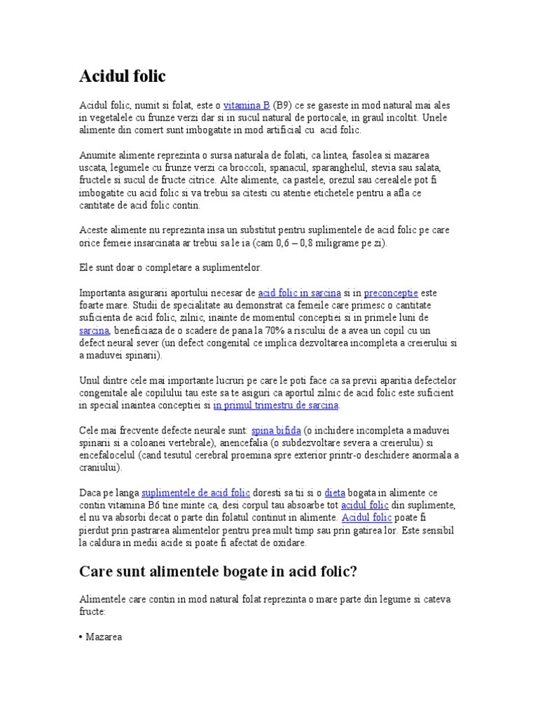 Folic acid supplementation during pregnancy for maternal health and pregnancy outcomes. Ca intotdeauna, noi le recomandam pe cele ecologice, daca este disponibil. Alimentele care contin acid folic.
