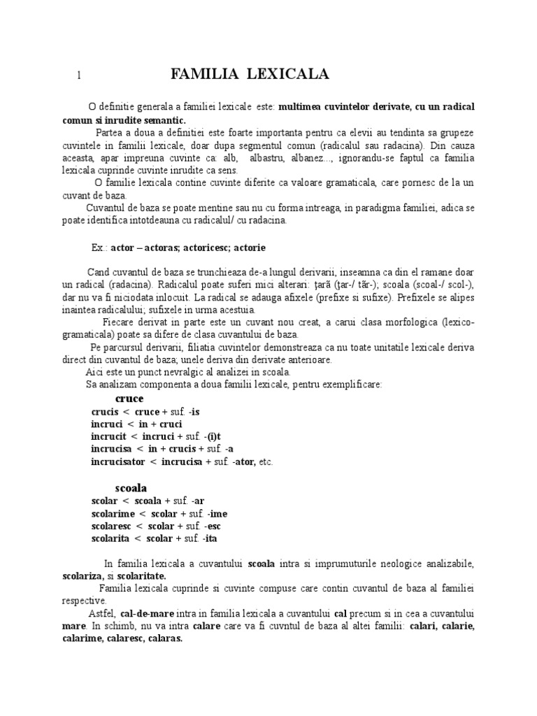 Learn vocabulary, terms and more with flashcards, games and other study tools. Find an answer to your question ✅ familia lexicala a cuvantului parinte si scoala. in world languages if you're in doubt about the correctness of the answers or there's no answer, then try to use the smart search and find answers to the similar questions. In familia lexicala a cuvantului scoala intra si imprumuturile neologice analizabile, scolariza, si scolaritate.