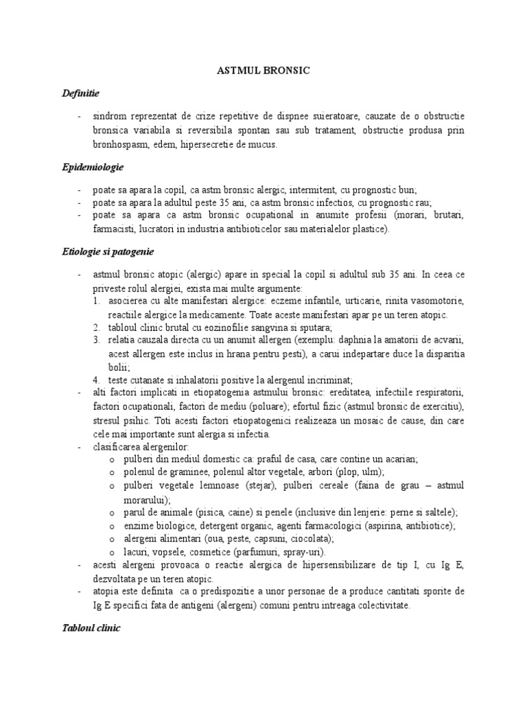 Algoritmul de tratament al astmului bronşic în. In urma simptomelor prezentate mai sus, este recomandat sa consulti un medic specialist pentru stabilirea unui diagnostic cat mai corect. Se deosebesc astmul bronșic extrinsec (alergic pur), care apare la tineri cu antecedente alergice familiale și astmul bronșic intrinsec, care apare după 40.