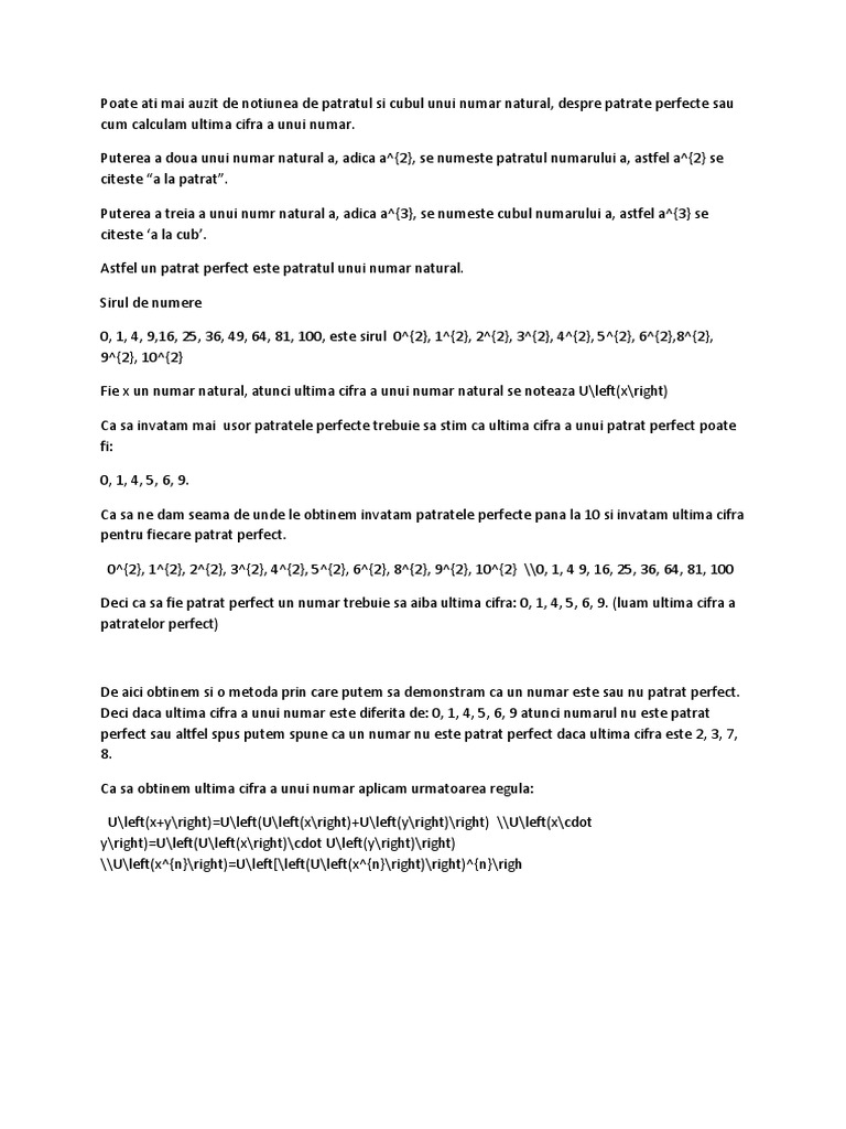 Atunci când scriem în cuvinte numere cu mai mult de trei cifre, sub formă de text, nu folosim punctul sau virgula. 0, 1, 4, 5, 6, 9 atunci numarul nu este patrat perfect sau altfel spus putem spune ca un numar nu este ca sa obtinem ultima cifra a unui numar aplicam urmatoarea regula: Operatia % (modulo) este restul imparitii unui numar la altul.