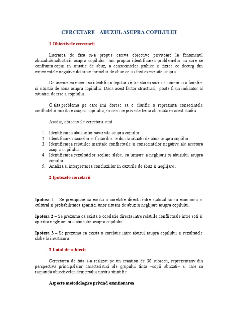 vizitati articolul complet aici : https://www.qreferat.com/referate/asistenta-sociala/CERCETARE-ABUZUL-ASUPRA-COPILU546.php În ultimele decenii studiul subiectului abuzului asupra copilului a cunoscut o explozie conceptul de abuz asupra copilului a evoluat de la vârsta veche până în prezent, fiind o practică care în aceste atitudini diferă în funcție de vârstă, dar în majoritatea cazurilor tind să fie îndreptate spre acțiunile de. Adopţia îşi produce efectele de la data. Datele de identificare ale copilului: