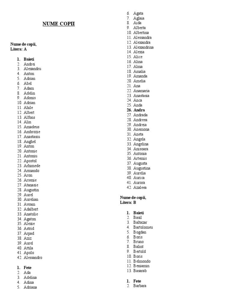 vizitati articolul complet aici : nume de baieti 2021 Romanii au dat mereu copiiilor lor nume de floare,. Alegerea unui nume pentru fetita ta tau poate fi coplesitoare. Afla care sunt numele de fete preferate in romania, europa si america: