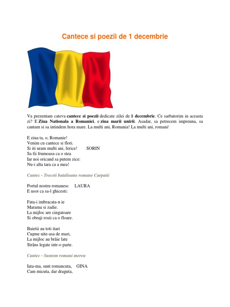vizitati articolul complet aici : https://ro.scribd.com/doc/296404714/Poezia-Rugaciune-Pentru-1-Decembrie De 1 decembrie, noi, romanii de pretutindeni, sarbatorim. Poezii iarna poezii scurte 1 decembrie de colorat 1 decembrie romania poezie 1 decembrie poezii toamna poezii despre iarna poezii eminescu poezii de mihai eminescu adrian paunescu poezii poezii romanesti imagini 1 decembrie poze 1 decembrie poezii pentru copii desene de 1. Acesta sa ne fie legamantul.