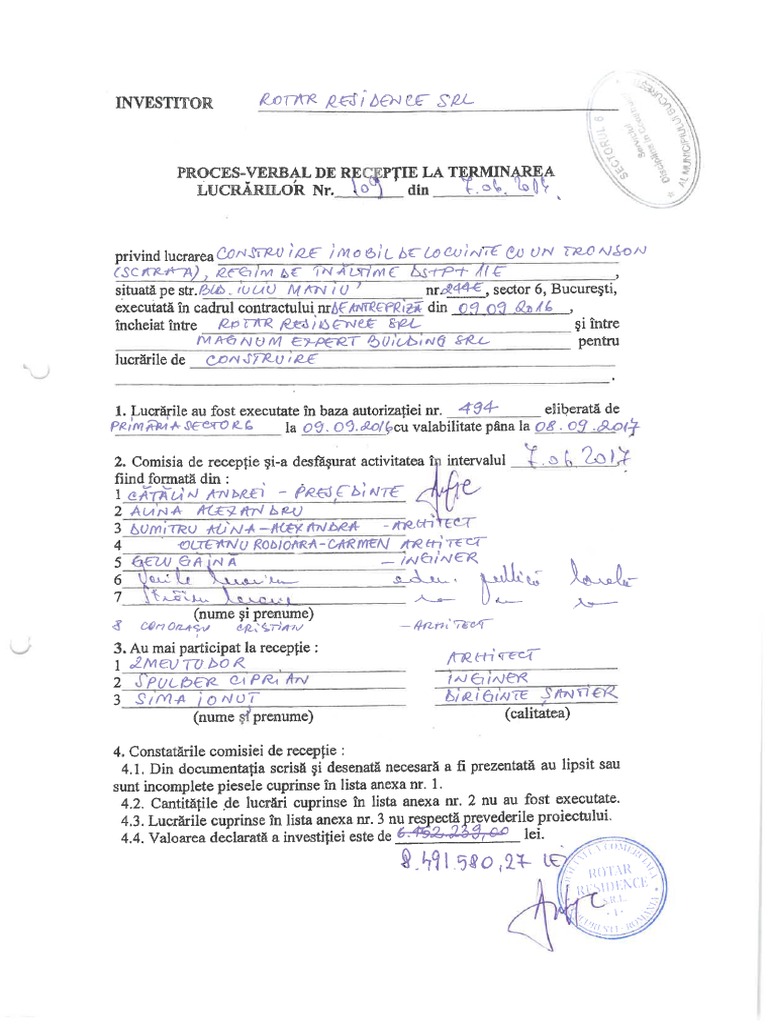 Descarcă de mai jos modelul de proces verbal pentru recepția la terminarea lucrărilor de construcții și instalații, conform h.g. In 2021, poti obtine un proces verbal de receptie la terminarea lucrarilor fara spaga, prin cunoasterea legii constructiilor. Comisia de recepţie la terminarea lucrarilor examinează obligatoriu: